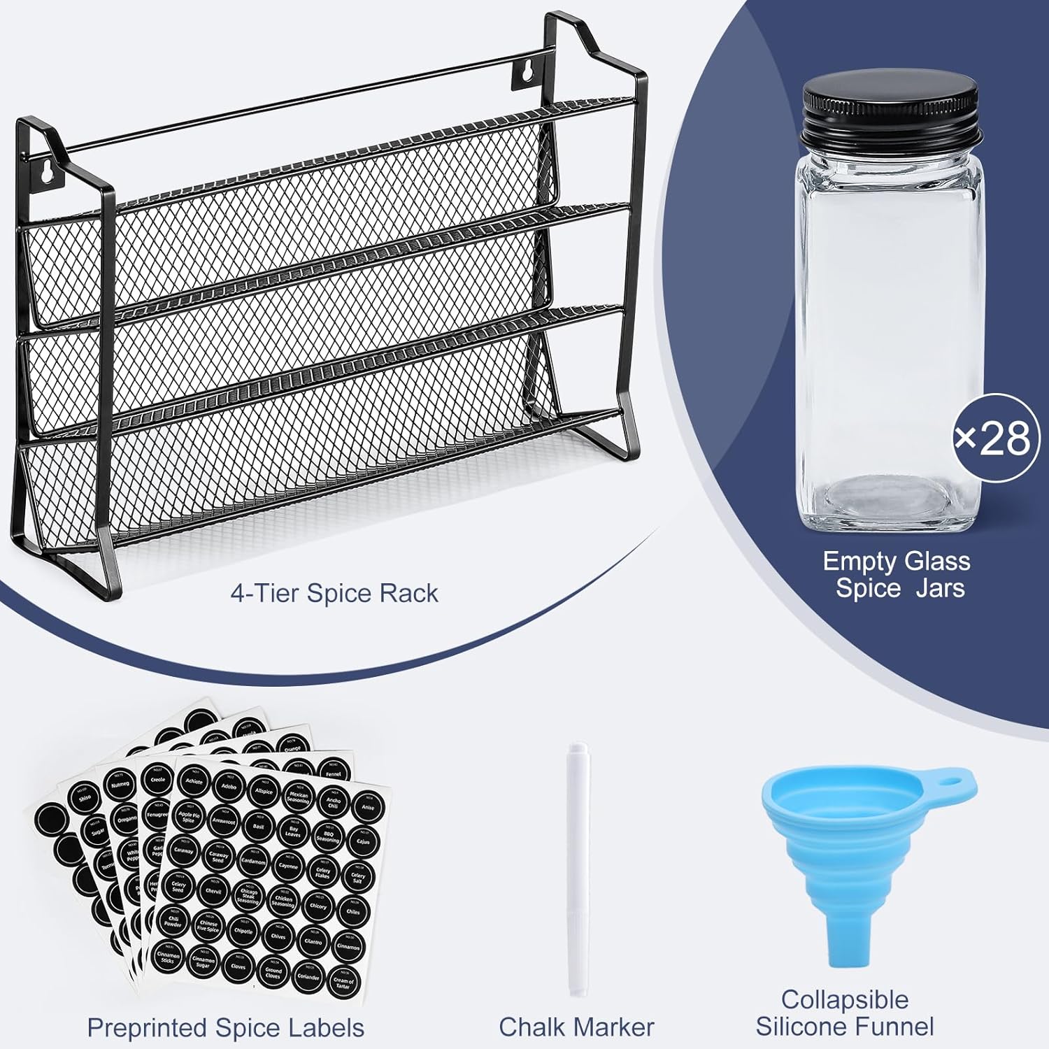 AOZITA Spice Rack Organizer for Cabinet, Spice Organizer with 28 Empty Spice Jars with Black Lids, Funnel, Spice Labels, Seasoning Organizer for Countertop, Cabinet, Kitchen, Pantry, Cupboard
